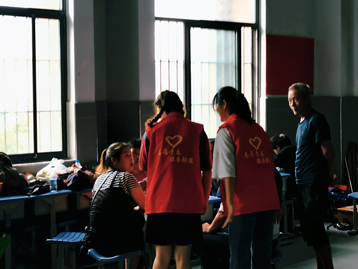 在临时安置点,志愿抗洪小队接受共青团鄢陵县一高委员会的统一调配,协助工作人员开展抗洪救灾工作。赵文杰、裴浩淇、周熙航等人组织志愿者统计捐助物资、搬运抗洪物资、清理杂物、打扫卫生并对村民安置点进行全面消毒,工作过程中,他们无畏酷暑、吃苦耐劳,积极投身志愿服务。抗洪小队也从原本的13人发展至70余人,他们乐于奉献、勇于担当的精神展现了当代老员工的良好精神面貌,赢得了群众的一致好评,并被河南卫视直播报道。