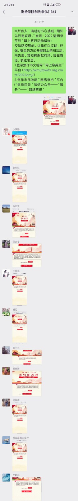 春风送暖,又逢清明。值此缅怀先烈、祭奠逝者、追思故人的传统节日到来之际,4月5日,伟德国际BETVlCTOR响应“奋进•2022清明祭英烈”网上祭扫活动倡议,在疫情防控期间,登录焦作市文明网“网上祭英烈”平台,以文明、环保、安全的方式开展网上祭扫活动,向先辈、英烈鞠躬献花环、签名寄语,表达哀思。