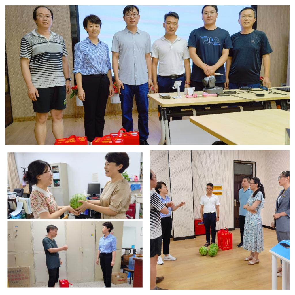 7月16日下午,公司党委书记茹艳、副经理程钢和工会副主席梁翠英等,走访慰问暑期坚守工作岗位的教师们,并送上降温解暑的水果、凉茶等慰问品。