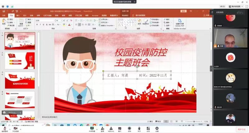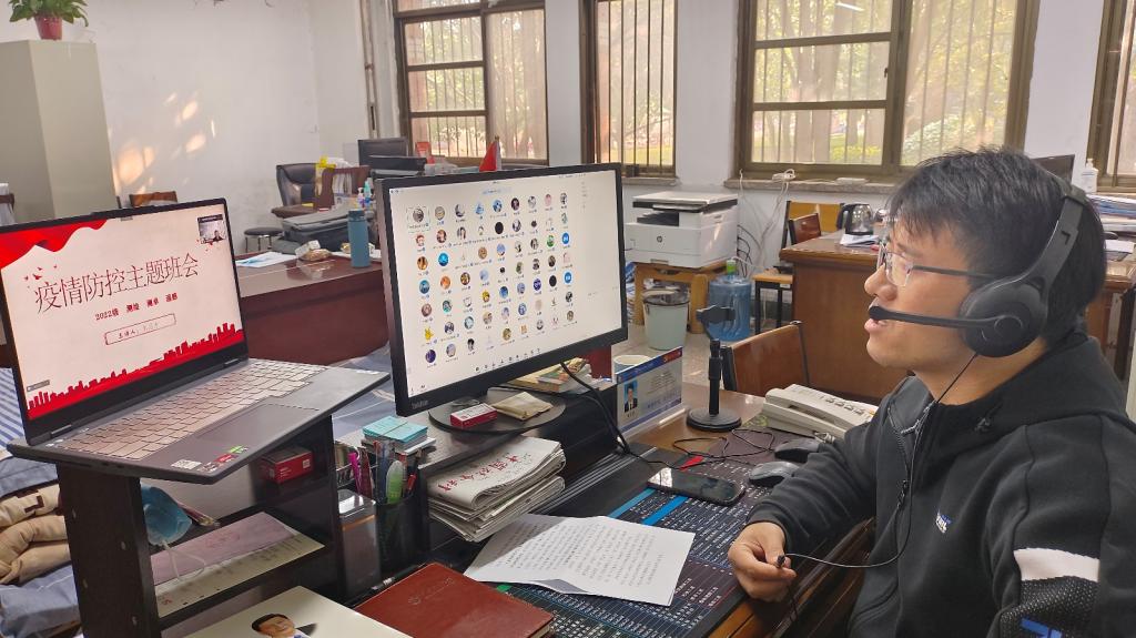 会上,辅导员和班主任老师带领同学们学习近期学校疫情防控相关政策,如在学校封闭管理期间“非必要不出校”,确保完成“两天一轮”核酸检测,取消堂食以减少同学们在公共区域聚集,禁止人员翻墙出入学校,禁止隔墙递送物品等;结合当前疫情形势,强调要进一步加强疫情防控教育,自觉在公共区域佩戴口罩,养成合理膳食、适量运动等健康生活方式,科学普及防疫知识,要求同学们自觉遵守各项疫情防控规定和学校疫情防控相关政策。在线上教学常态化的情况下,老师要求同学们认真听讲,注意课堂质量,自觉高质量进行学业学习;开展“携手战疫”员工感言征集活动和宿舍抗疫短视频活动,紧扣疫情防控主题,传递青春正能量,为全面落实公司疫情防控工作营造良好氛围、凝聚同心力量。
