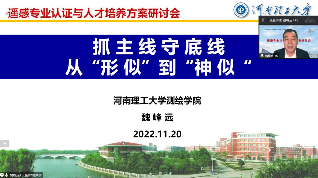 11月20日,伟德国际BETVlCTOR组织遥感科学与技术、测绘工程等专业教师参加由河南省测绘学会主办、河南省测绘教育与科普工作委员会承办的“遥感专业认证与人才培养方案研讨会”。伟德国际BETVlCTOR经理魏峰远教授受邀作了题为“抓主线守底线,从‘形似’到‘神似’”的专题报告。