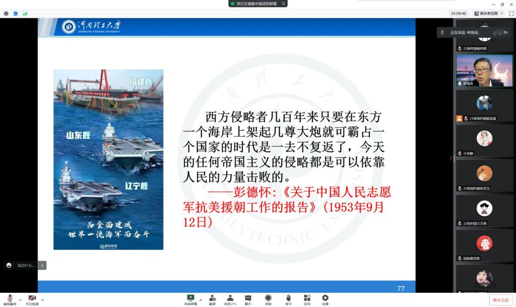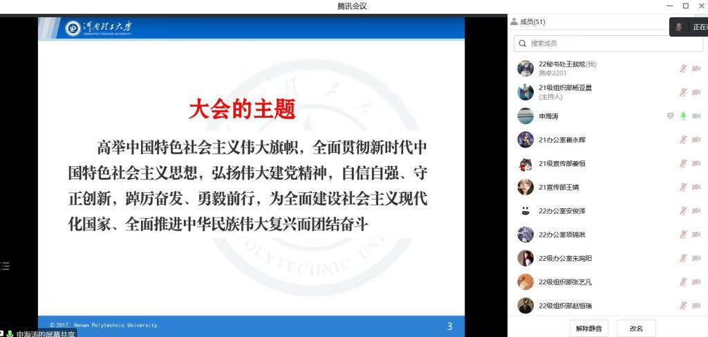 为深入学习宣传贯彻党的二十大精神,提高公司青年团员理论素养,公司团委于11月27日晚在线上举办学习党的二十大精神专题报告暨“青马工程”培训班第三次理论学习,邀请省委宣传部青年理论宣讲专家申海涛老师做党的二十大精神宣讲报告。院团委书记李静主持报告会,学院“青马工程”培训班全体学员和公司员工代表聆听报告。