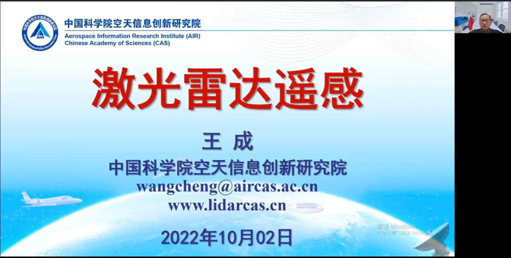 王成,中国科学院空天信息创新研究院研究员/博士生导师、中国科学院大学岗位教授、国际数字地球学会中国国家委员会激光雷达专业委员会主任委员,入选国家高层次人才计划,研究方向为激光雷达遥感,发表相关SCI论文100余篇,获省部级科技奖励10项;出版了第一部激光雷达遥感教材《激光雷达遥感导论》被全国二十多所高校使用,开发了激光雷达软件“点云魔方”并在测绘、林业、电力等行业推广使用。王老师讲授课程主题为《激光雷达遥感原理、技术与应用》,他首先系统阐述了激光雷达的概念、数据格式、特点、类型、系统组成和激光卫星计划;随后通过激光雷达方程和激光雷达三维辐射传输模型介绍了激光雷达遥感原理;详尽介绍了激光雷达数据处理,并具体阐述了离散点云数据、全波形数据和光子计数数据的处理方法;最后以激光雷达在植被反演中的广泛应用为具体案例,结合其在基础测绘、数字城市、冰川监测、文化遗产保护等方面的应用展示了激光雷达的广阔前景。