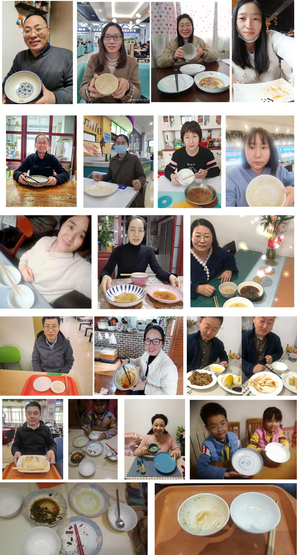 本次活动得到了全院教职工的积极响应,大家通过光盘照片晒图打卡,身体力行,践行节约,用行动影响身边的人,共同营造文明用餐环境。
