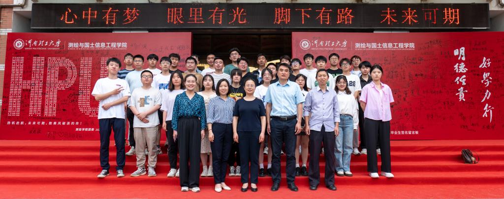 会上,袁占良向顺利完成学业的2023届毕业生致以最热烈的祝贺,为他们即将奔赴的未来送以最美好的祝福。他指出,要把学习作为生命中永恒的主题,牢记学无止境,希望同学们始终铭记校风校训,心怀梦想,勇立时代潮头。随后,三位员工代表依次发言,回顾四年求学时光,向老师们表达了衷心的感谢,向学院致以真挚的祝福。毕业生们畅所欲言,表达感恩和不舍之情的同时,还为学院日后发展提出宝贵建议。张红霞作总结讲话,她向毕业生提出三点希望,一是珍惜师生情谊,感怀母校培养;二是传承测绘精神,厚植家国情怀;三是扣好廉洁扣子,坚守做人底线;张红霞真诚祝愿毕业生们志存高远,谦虚笃行,永远保持奋斗姿态,追求心中所想,实现心中所愿。老师们谆谆嘱咐,殷殷祝福,全体师生一起合唱校歌并合影留念。