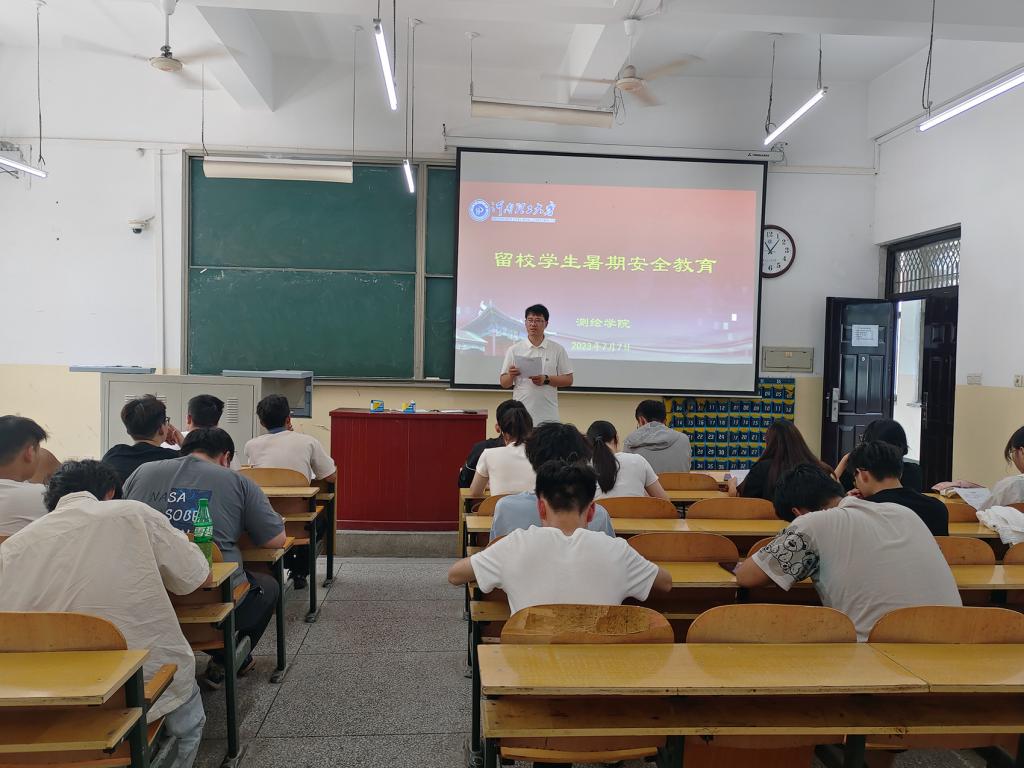 会上,郭学鹏传达了《bevictor伟德国际2023年暑假员工安全教育管理通知》,强调学院要高度重视暑期员工安全教育工作,要重点开展员工人身财产安全、消防安全、交通安全、实习实践等安全教育,切实增强员工安全防范意识和自我保护能力。为做好暑期留校员工管理工作,学院组织发放《暑期安全提醒卡》并签订《留校安全承诺书》,确保安全教育提醒和防范内容人人知晓,人人遵照执行。会后,学院各辅导员针对暑期留校员工召开了安全教育会议,传达了学校、学院会议精神,为留校员工的安全做好保障。