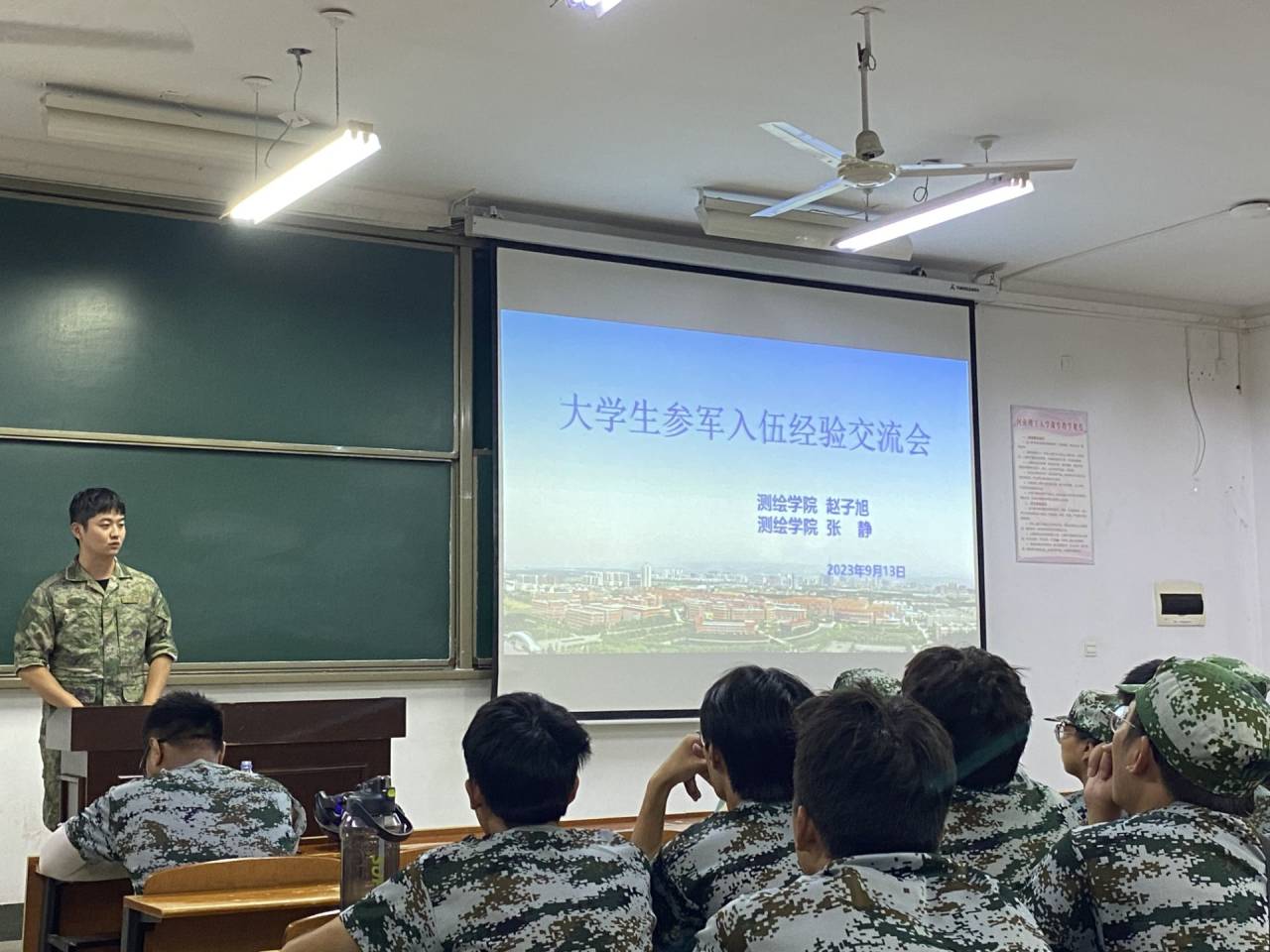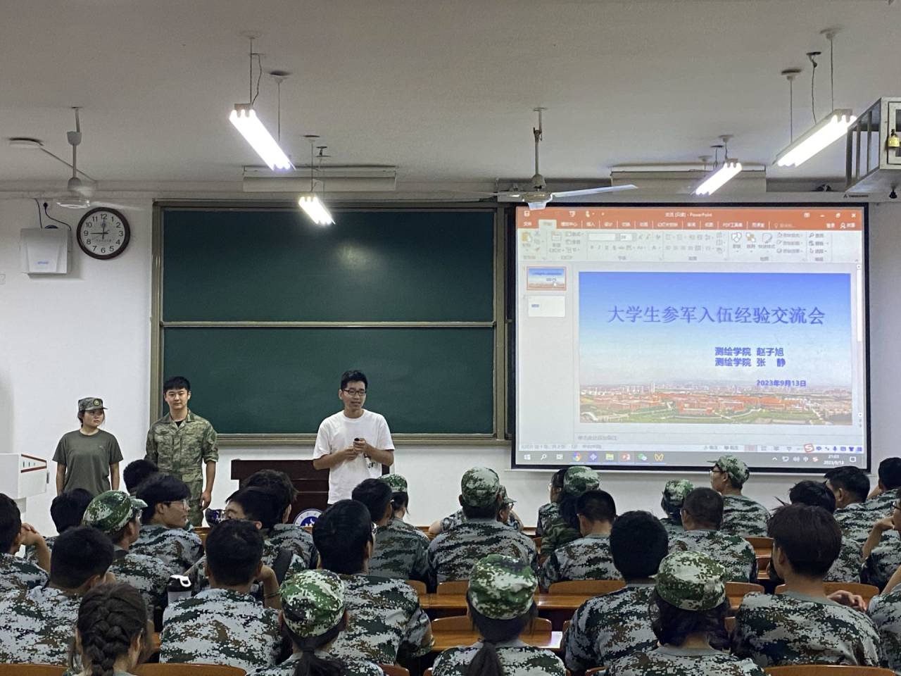 为拓宽员工视野做好职业规划,并响应国家号召,鼓励老员工积极应征入伍,推进国防和军队现代化建设。伟德国际BETVlCTOR测绘工程(导航方向)2023级1班和2班以及测绘工程2021级3班和4班,于9月13号晚上在三号教学楼3306教室召开老员工参军入伍经验交流会。会议邀请了曾在中国人民解放军空军和火箭军参军入伍的赵子旭、张静同志,分享了他们的参军经历和收获。