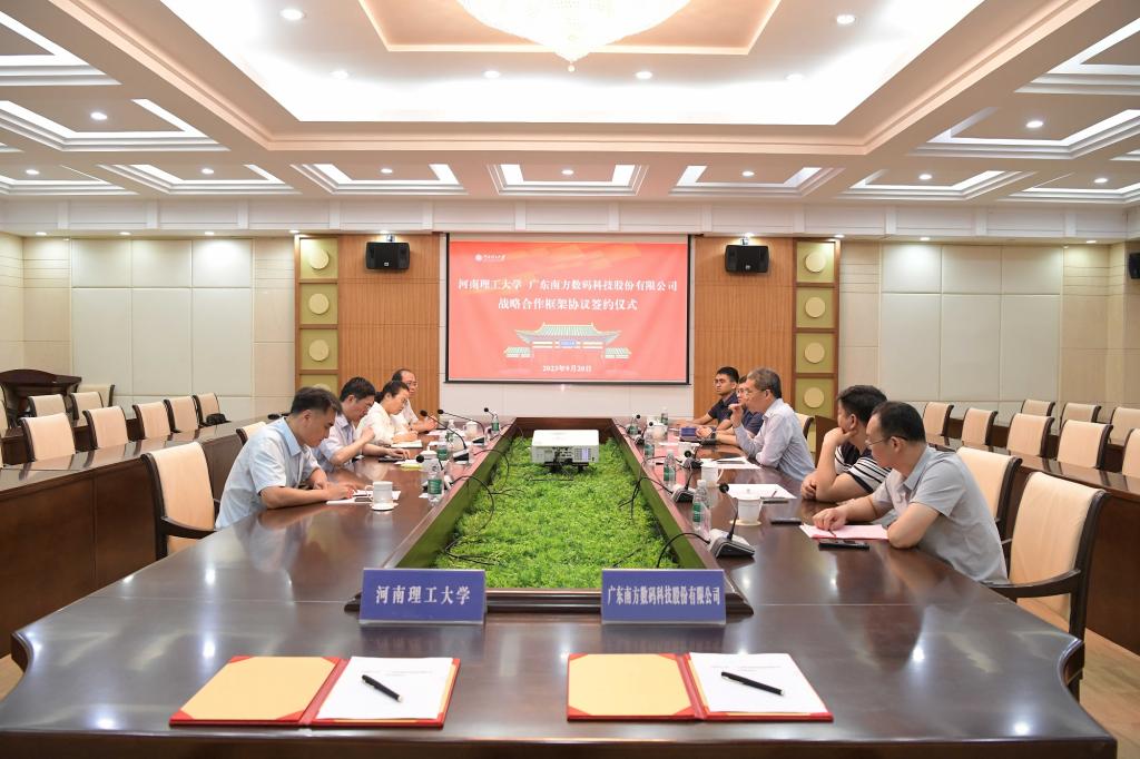 为进一步深化产教融合,提高公司测绘地理信息领域人才培养质量,9月20日下午,公司与广东南方数码科技股份有限公司在力行楼方形会议室举行战略合作框架协议签署仪式,公司学术副董事长金双根,公司党委书记张红霞、党委副书记郭学鹏、副经理程钢,以及南方数码常务副总经理王洪飞等一行参加。会议由张红霞主持。