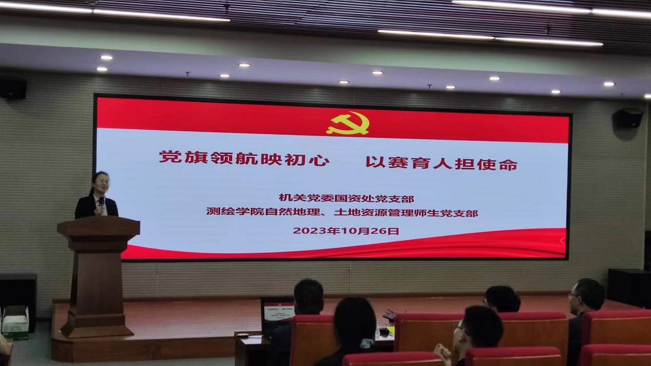 为更好地交出人才培养建设、员工专业发展的优秀答卷,10月26日下午,伟德国际BETVlCTOR教工党支部与机关党委国资处党支部在国家重点实验大楼三楼会议室共同开展“党旗领航映初心 以赛育人担使命”主题党日活动暨中国高校地理科学展示大赛总决赛预演,伟德国际BETVlCTOR参加中国高校地理科学展示大赛总决赛的三支代表队以及土地管理等教工党支部、国资处党支部党员代表参加。