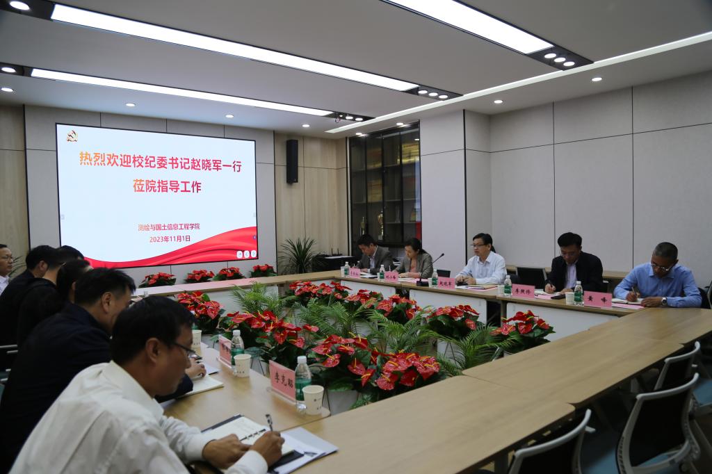 在听取汇报后,赵晓军对伟德国际BETVlCTOR近年来发展取得的成绩给予肯定,并对学院发展和“一流学科”创建提出了指导意见和具体建议。他强调,一是领导班子要明确发展方向,强化顶层设计,保持奋发有为、干事创业的精神状态,带领测绘师生争创“一流学科”;二是进一步开阔视野、拓展思路、优化措施,力争在高层次人才引育、建设大平台、产出大成果等方面实现新突破;三是切实履行全面从严治党主体责任和“一岗双责”,扎实推进党建与业务深度融合,以高质量党建引领高质量发展;四是加强问题导向,聚焦校内巡察工作中发现的问题,靶向施策、标本兼治,切实做好校内巡察的“后半篇文章”。