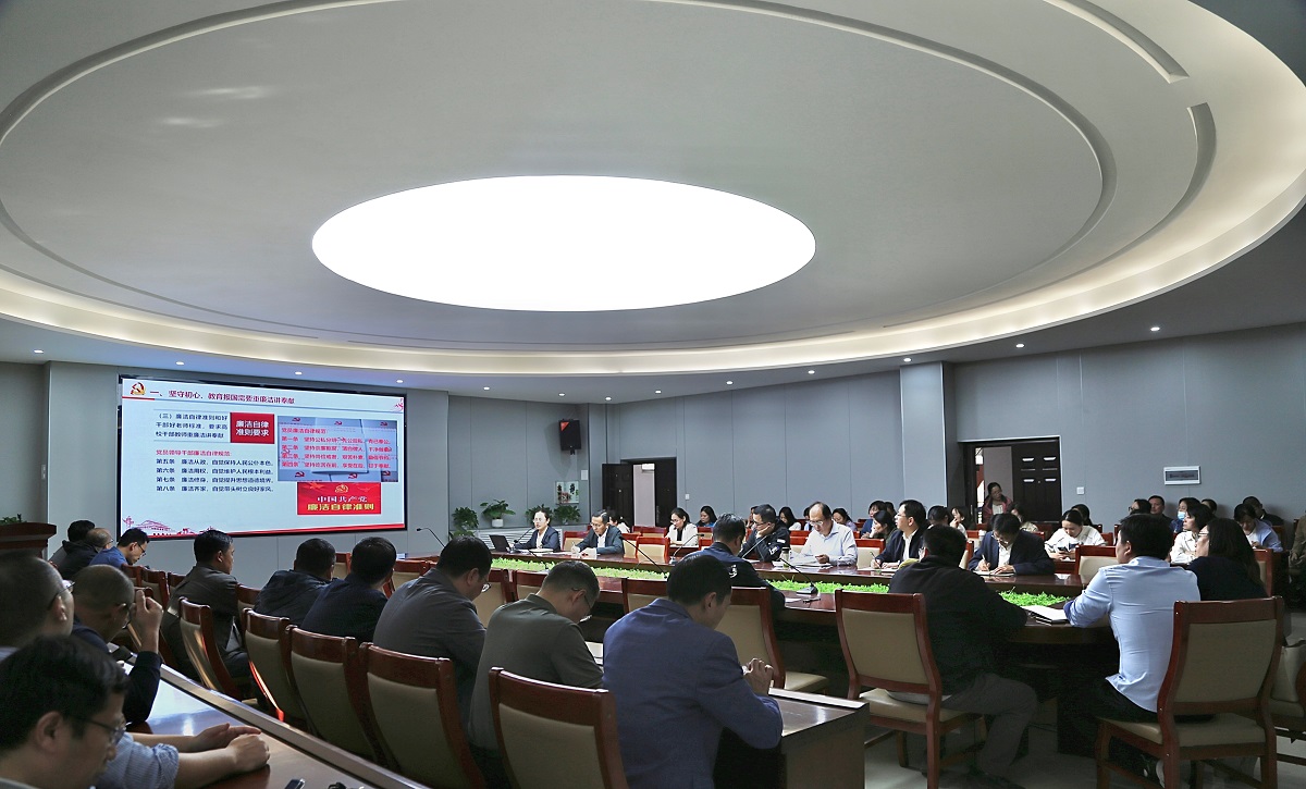为进一步加强党风廉政教育,筑牢廉洁自律思想防线,增强广大党员干部纪律规矩意识,10月30日下午,公司党委在学院一楼会议室开展“廉洁教育正风纪 筑牢防线强免疫”领学促学活动。公司党委书记张红霞主讲,全体教职工参加。
