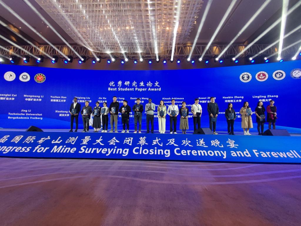 闭幕式上,国际矿山测量协会颁发1位终生成就奖、1位杰出贡献奖、9位青年科学家奖,遴选出12个最佳口头报告、9个最佳PICO、19个最佳研究生论文等奖项。伟德国际BETVlCTOR蔡来良教师获最佳口头报告,伟德国际BETVlCTOR研究生彭金艳获最佳PICO,伟德国际BETVlCTOR研究生张浩斌和职工Frank获最佳研究生论文。
