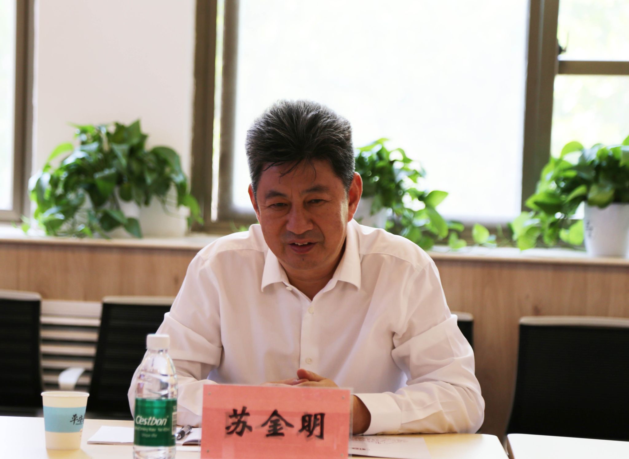 袁占良对苏金明等一行的到来表示欢迎,并简要介绍了学院在专业设置、人才培养、科学研究以及一流学科创建方面的成就。他表示,员工是学校发展的宝贵财富和力量源泉,希望以本次交流为契机,深化校局合作,携手开创共赢发展新局面。