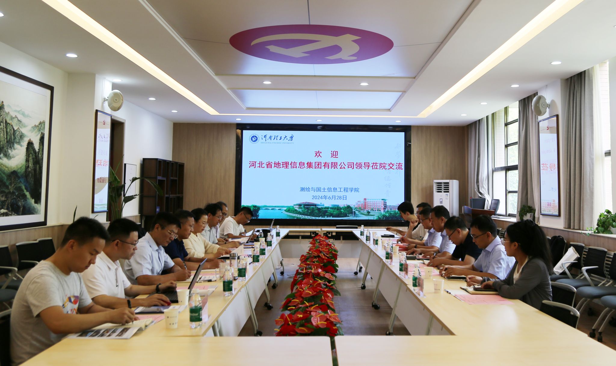 6月28日上午,河北省地理信息集团有限公司董事长陈群国、总工程师闻洪峰、技术部部长王友雷、自然资源大数据应用中心主任孙 伟等一行7人莅院交流座谈,座谈会在测绘楼221会议室举行,公司党委书记张红霞、副经理柴华彬、副经理何荣以及部分教师代表参会。会议由张红霞主持。