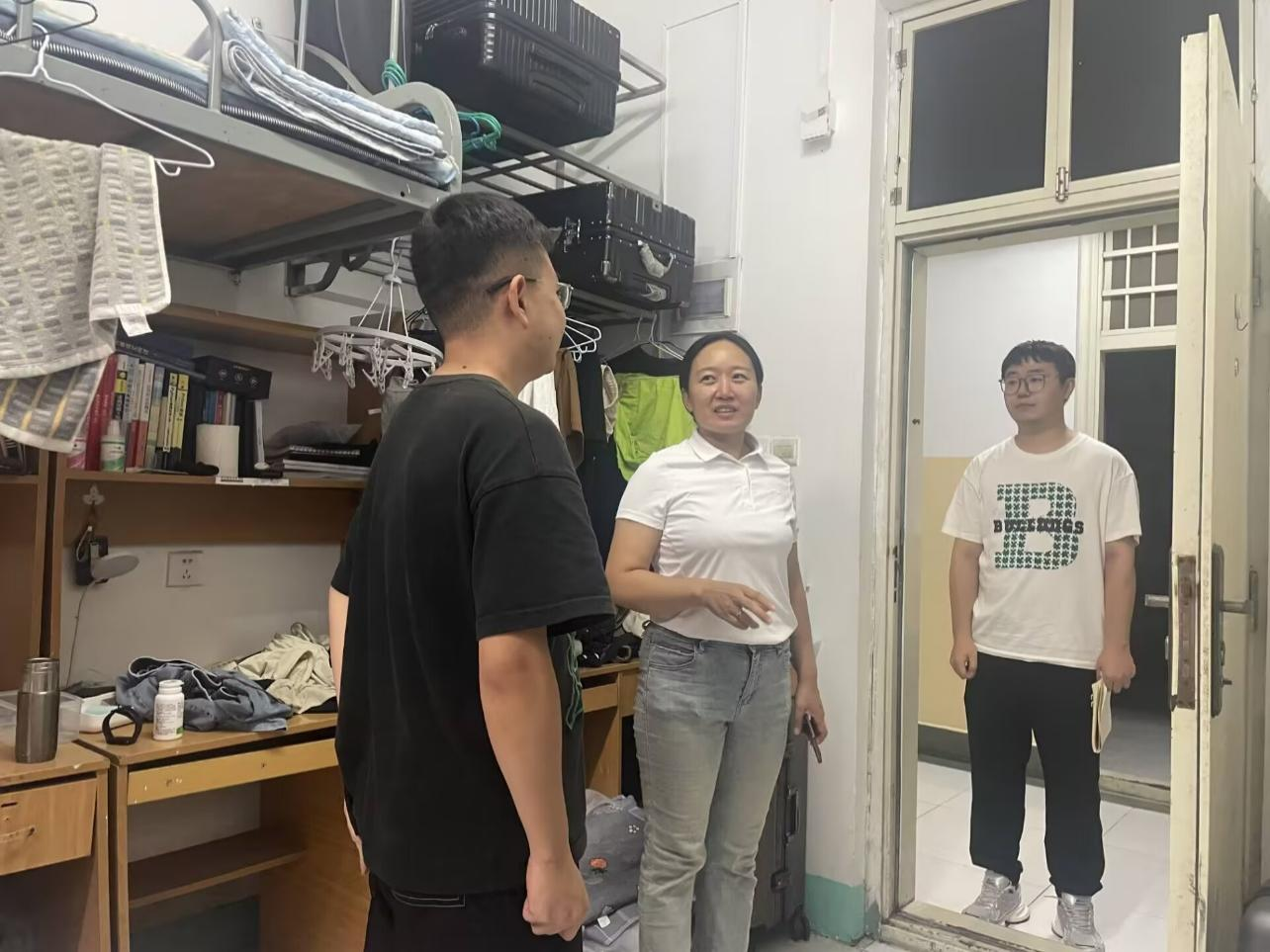 为精准摸排研究生到校情况,提高研究生安全防范意识,9月1日晚上,公司党委副书记王雷霞、辅导员拓海燕、范梦瑶、刘赛思、赵春强分别对研究生男生、女生宿舍进行走访慰问。