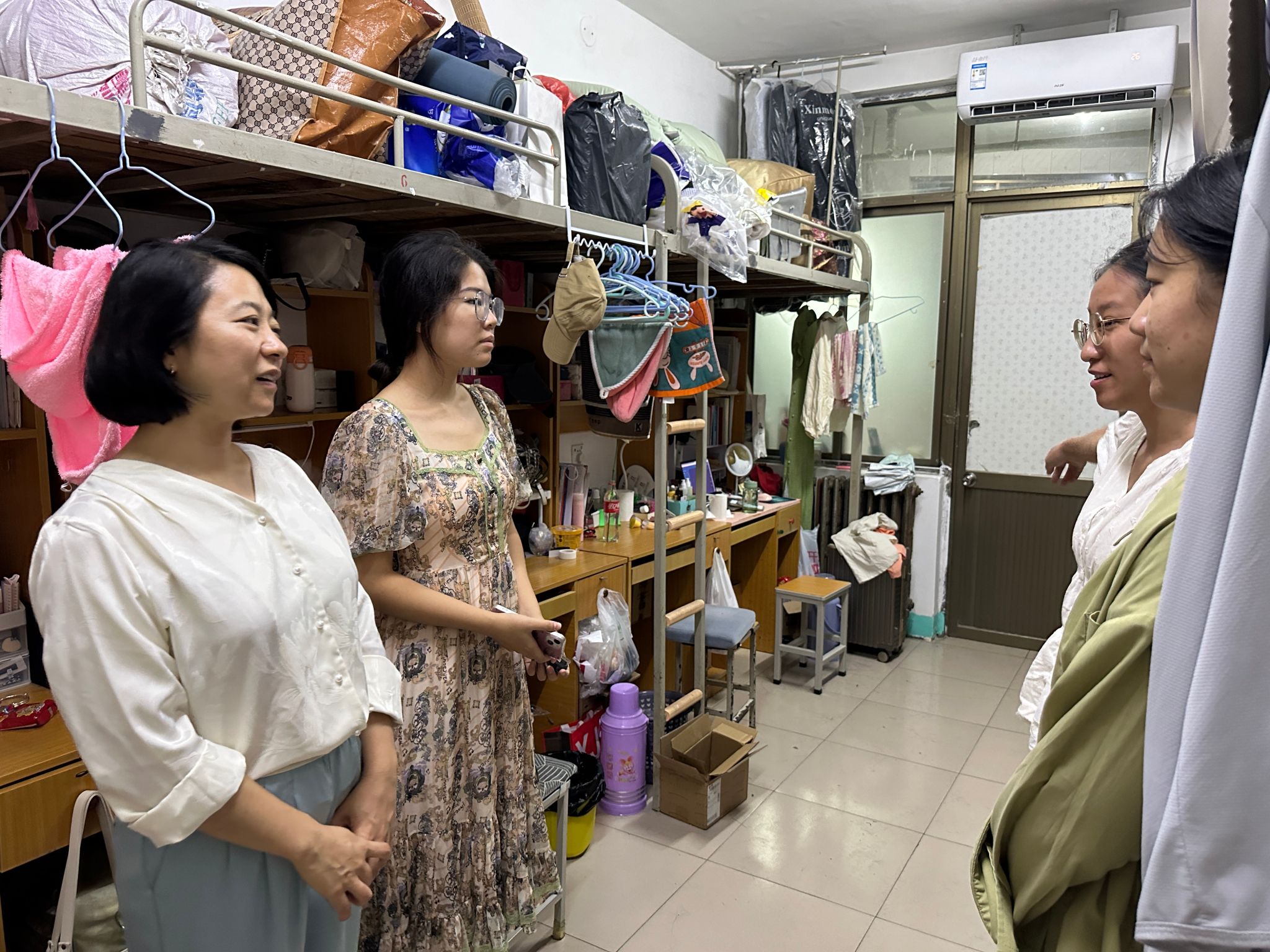 老师们仔细地走访了每一间学院研究生宿舍,排查宿舍是否存在安全隐患,了解他们返校报到的情况,对暂时还未返校报到的员工名单作了摸排统计,确保员工全部安全返校做好准备。走访过程中,王雷霞副书记认真询问了研究生们学习、科研工作的进展,叮嘱大家如果有困难一定要及时和老师联系,学院会努力解决大家遇到的问题和困难,帮助大家更好地迎接新学期的到来。此外,老师们还分享一些就业和求职的理念、经验,并对大家提出的考编问题,作了详细解答。
