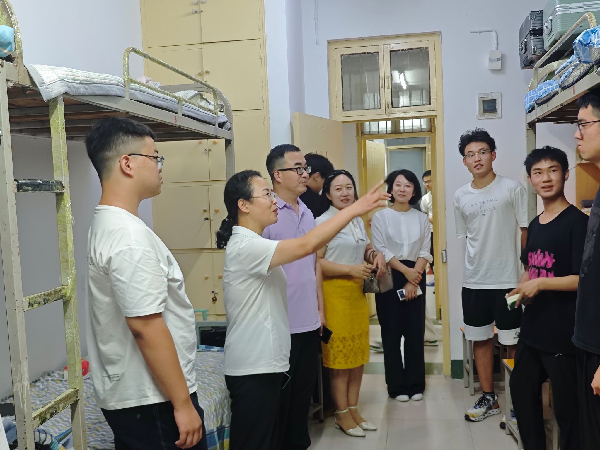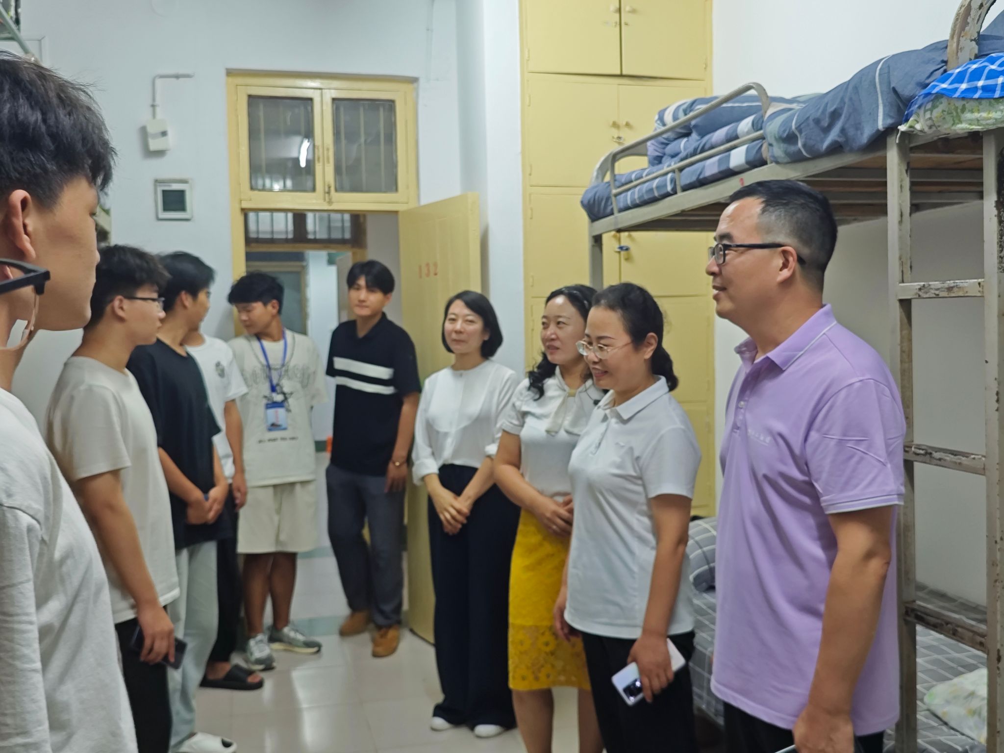 为了解新生入学情况,根据学校相关要求,帮助新生尽快适应老员工活,同时表达学院对新生的关怀之情,9月5日晚,公司党委书记张红霞、经理袁占良、党委副书记王雷霞、学工办负责人拓海燕和24级新生辅导员以及全体班主任一同深入大一新生宿舍走访慰问。