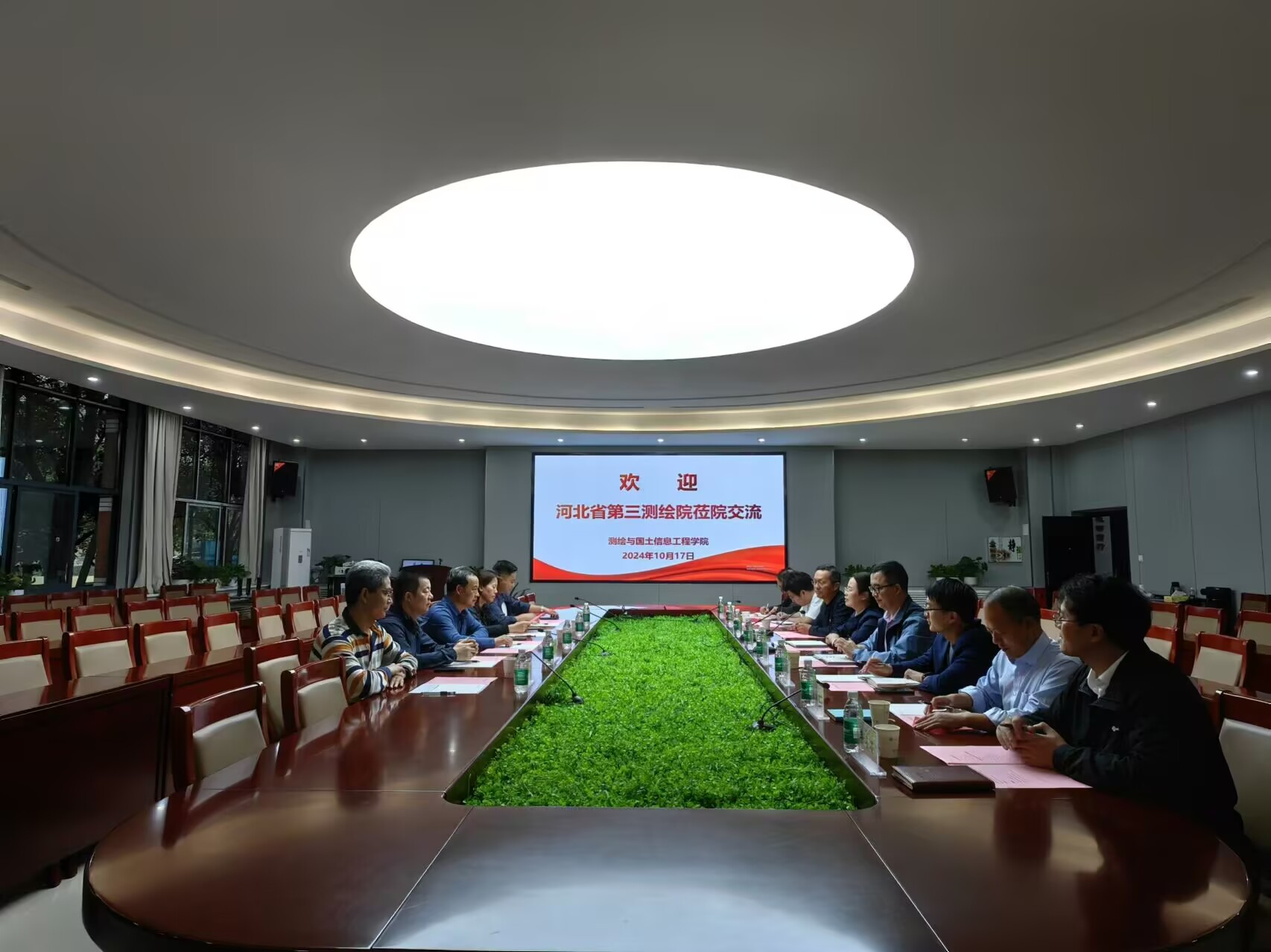 10月17日下午,河北省测绘三公司党委书记、经理李新法,副经理王翠欣、张新行等一行5人莅院交流座谈,座谈会在学院101会议室举行,公司党委书记张红霞、经理袁占良、副经理何荣及部分系室负责人参加会议。会议由何荣主持。