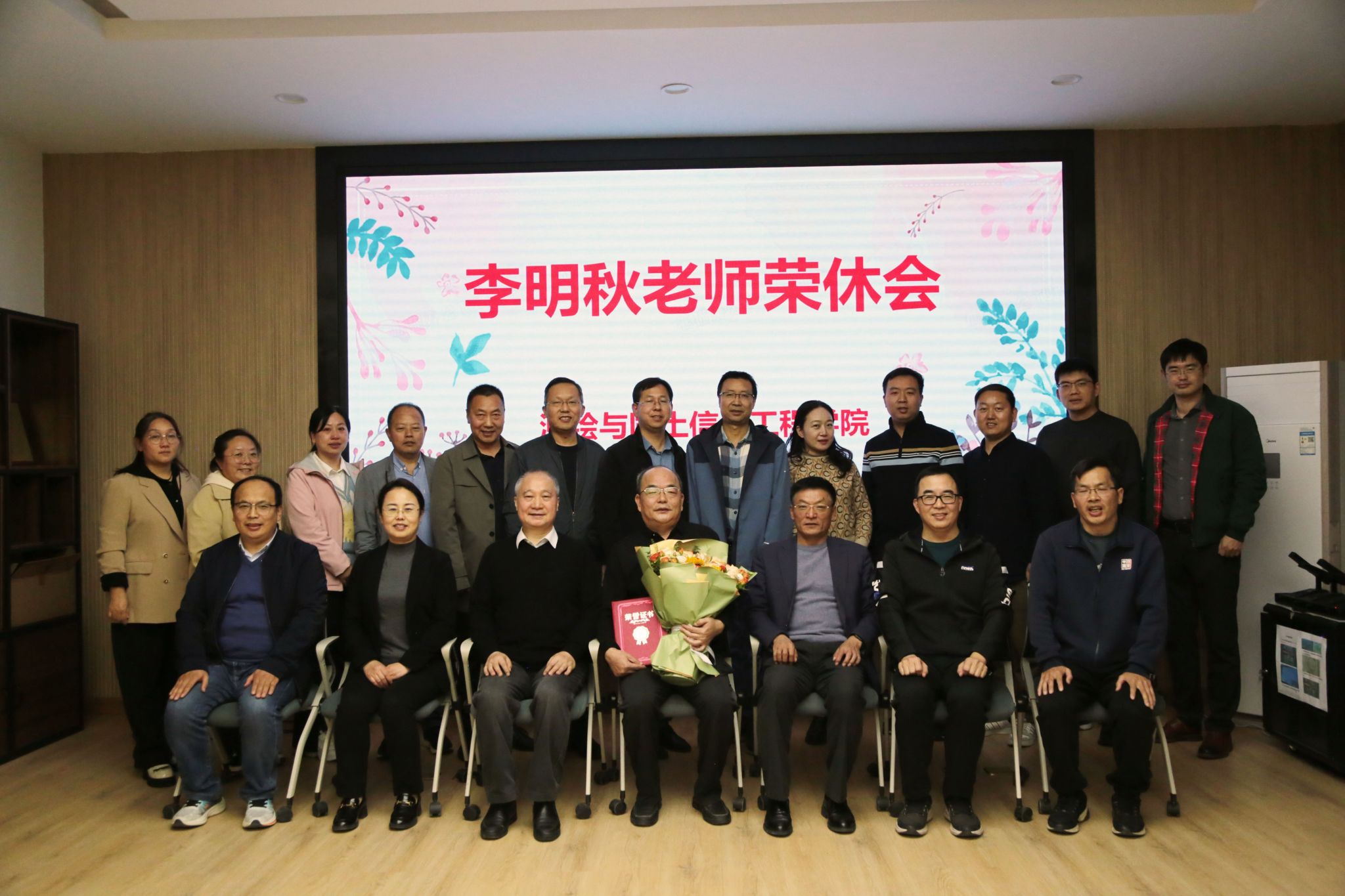 座谈会上,与会人员共同观看了学院精心制作的李明秋教授职业生涯风采视频。公司党委书记张红霞、经理袁占良为李明秋教授颁发荣休证书和纪念品,以表达对李老师多年辛勤付出的崇高敬意和深切感谢。随后,袁占良高度评价了李明秋教授在教学、科研及学院建设中的卓越贡献,并代表学院向李明秋教授致以诚挚的问候。张红霞衷心祝愿李明秋教授生活幸福,常回家看看,同时希望学院青年教师学习好、传承好荣休教师的奉献精神和宝贵经验,涵养高尚师德,提升业务水平,谱写学校学院事业高质量发展新篇章。教工代表纷纷发言,共同回忆与李老师相处的过往,向他表达依依惜别之情,并表示以李老师为榜样,传承他全心全意为师生服务、辛勤奉献的精神,为学校、学院的发展继续贡献力量。最后,李明秋教授表达了对测绘事业的无限热爱,以及对学院、同事和员工们的深厚情感。他表示,虽然即将离开工作岗位,但仍心系学院,愿继续为测绘教育事业的发展贡献余热,同时也寄语年轻教师勇攀高峰,为测绘学科的创新发展添砖加瓦。