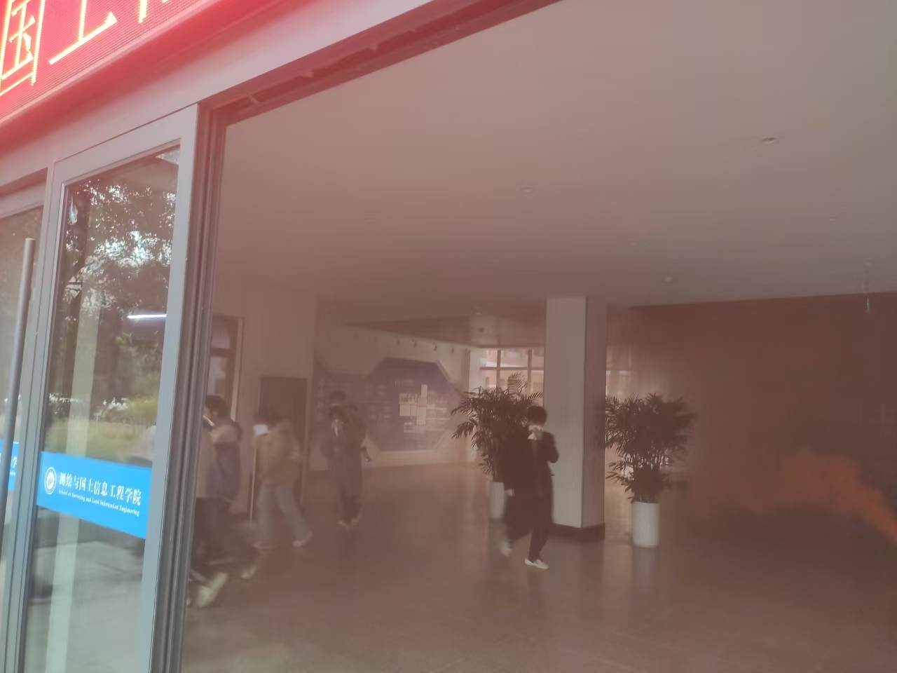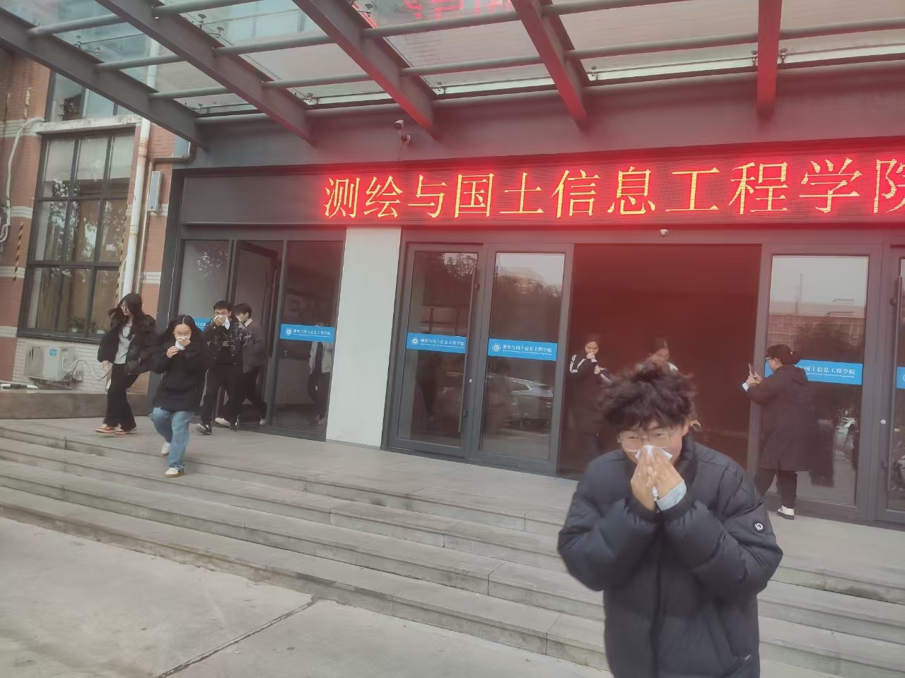 演练过程中,随着模拟烟雾的逐渐蔓延和警报声的骤然响起,全体师生在学院安全员的组织和引导下迅速行动,弯腰前行,并用毛巾或衣物捂住口鼻,按照预定的疏散路线紧张有序地撤离到楼外安全区域。整个疏散过程井然有序,充分体现了师生们良好的应急意识和高效的协作能力。